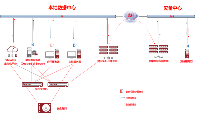 ◆ 在海大數據中心部署鼎甲DBackup備份存儲系統,對本地業務系統進行集中備份策略的配置;