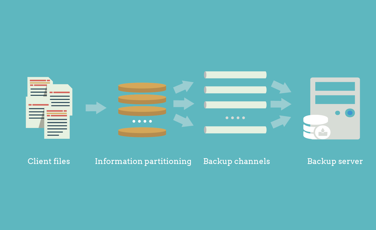To acquire and process files before backup, DBackup adopts multi-channel parallel technology that allows the system to firstly traverse through files using pipelining technology, create a file index, shard file information, then transfer backup data through multiple backup channels to the storage server.