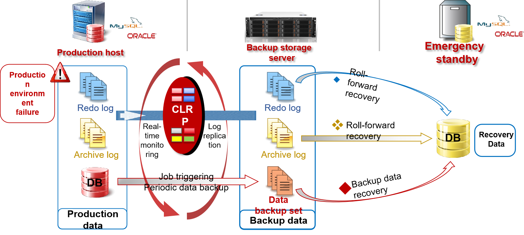 It currently only performs periodical incremental backup and data synchronization is not realized between master and standby databases. Once the master database malfunctions, it will take forever to recover and data loss can hardly be avoided.
